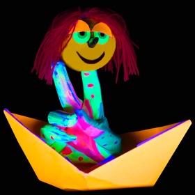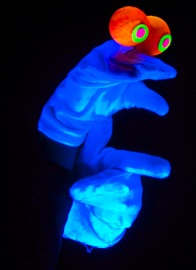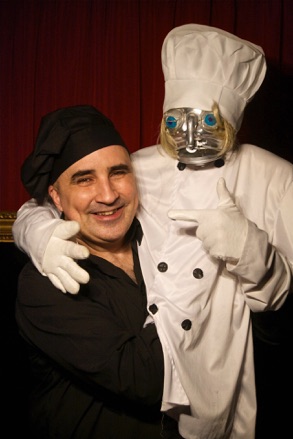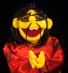 -¿¡QUÉ MOSCA TE HA PICADO?! Títeres de guante, alguno de ellos realizados con otros materiales reciclados, como el doctor Niquete y del Chef Guevara (imagen de la derecha) cuya cabeza es una tetera boca abajo.