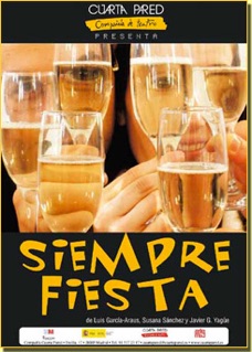 SIEMPRE FIESTA. Comedia. Coautora junto a Luis García Araús y Javier G. Yagüe. De Cía. CUARTA PARED. Dirigida por Javier G. Yagüe. Estreno 11 marzo 2009 en sala Cuarta Pared, Madrid.