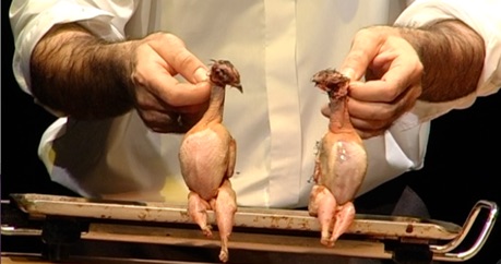 Otro ejemplo: la aparición repentina de un ser fabricado, de trapo y madera, inventado enteramente, que no correspondiese a nada, y sin embargo perturbador por naturaleza, capaz de devolver a la escena un pequeño soplo de ese gran miedo meta físico que es raíz de todo el teatro antiguo."